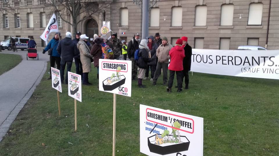 Arcos, filiale de Vinci en charge du projet autoroutier de contournement ouest de Strasbourg, avait confirmé hier, en présence d’un huissier, sans complexe, venir sur la zone d’occupation du moulin ce mercredi 21 février pour y installer deux ponts de chantier et grillager la zone.