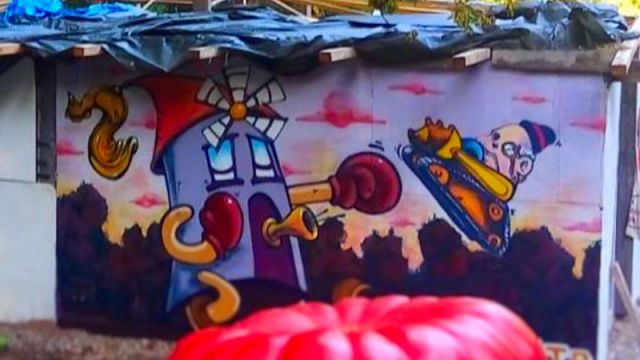 10h23 – Le week-end de veille des arbres se déroule superbement. Beaucoup de monde sont déjà venus depuis vendredi soir. Merci aux artistes qui ont témoigné de leur soutien. Nous reviendrons dans un article à venir sur ce qui s’est déroulé. Cette après-midi, rendez-vous à 16h pour une assemblée de lutte. En attendant, merci au graffeur pour l’oeuvre qui nous a réalisé :