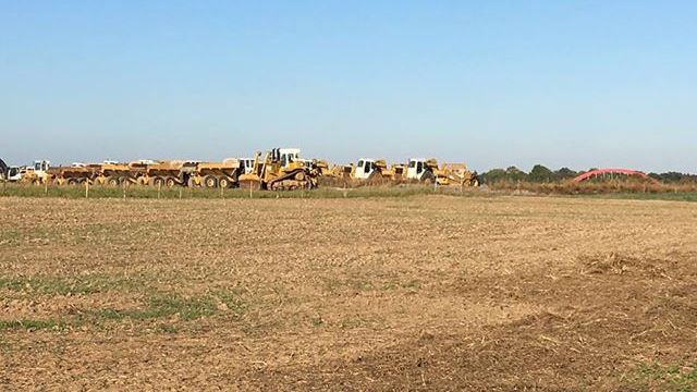 Une vigie nous signale la présence de machines de terrassement avant l’entrée de Stutzheim (4 tombereaux ) et également avant Griesheim-sur-Souffel, (4 tombereaux et 3-4 pelleteuses). Ils ont également posé du geotextile et une baraque de chantier sur chaque site – photos prises le 4 octobre.