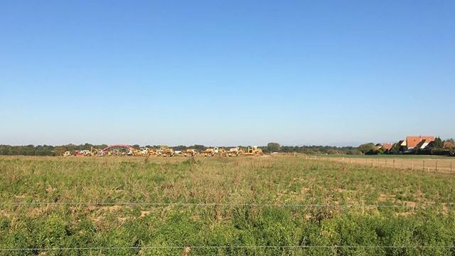 A Eckwersheim les engins de guerre sont alignés en ordre de marche, prêts pour l’assaut final. A noter la proximité avec les maisons de Vendenheim. A souligner aussi la rapidité de réaction de l’administration : la demande de non circulation a été déposée le 1er octobre, l’arrêté municipal délivré dès le lendemain 2 octobre – « quand on pense aux délais nécessaires pour des demandes de permis par exemple…  » – indiques un témoin. Ici, nous sommes à la sortie de Vendenheim, en direction d’Eckwersheim, non loin du château d’eau – photos prises le 4 octobre.