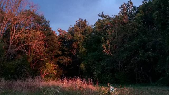 Description de la scène : » ma chienne était en train de patauger dans le ruisseau et une feuille est tombée dans l’eau puis une autre ; j ai levé les yeux et j ai observé les arbres, pas une brise, pas un souffle de vent et d un coup les feuilles ont commencé à tomber comme des flocons de neiges par dizaine… le temps était comme arrêté. Même ma chienne s’est mise à observer le haut des arbres et là j’ai eu la même sensation que celle qu on a quand un être cher décède. Une énorme tristesse émanant de la nature et j ai su 15 min plus tard que la destruction avait débutée…