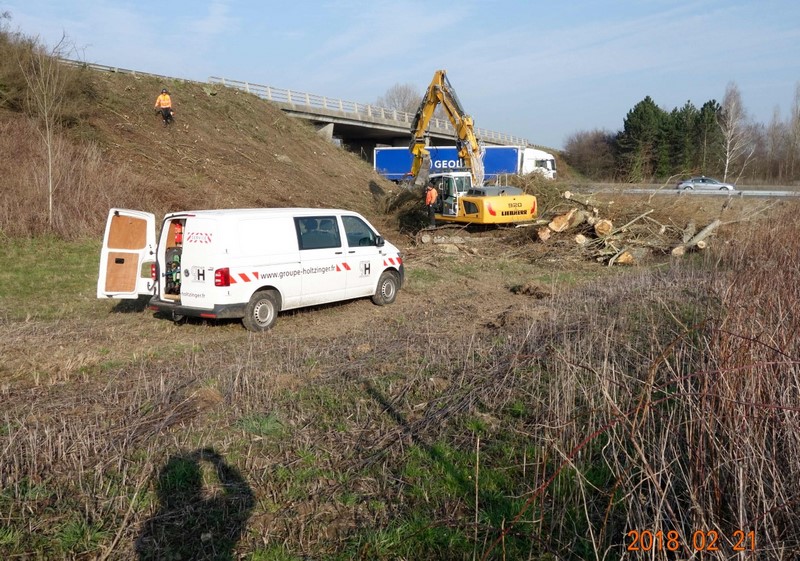 Nous l’avions évoqué en fin de semaine dernière. Des coupes ont eu lieu au niveau de l’échangeur entre l’A4 et l’A35 dans le secteur de Vendenheim. C’est la société Holtzinger qui est chargé des déboisements. Des ouvriers de l’entreprise avaient été aussi vus dans la zone industrielle de Duttlenheim sur un secteur également concerné par le GCO. C’est la même entreprise qui était présente le 20 septembre 2017 à Kolbsheim.