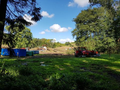 Comme hier, les opérations d’évacuation des grumes se poursuivent. Au niveau de la maison éclusiere, des travaux se poursuivent sous protection des CM.