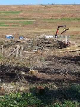 Lundi, en journée, abattage d’un grand noyer (pas de copeaux visibles sur place – souche meulée) – arbre situé près de la RN4, côté droit, direction Strasbourg. Hier : abattage d’arbres le long du ruisseau séparant les bans de Hurtigheim et Ittenheim. Le bois est stocké rive Hurtigheim. Ce mercredi, poursuite des travaux, encadrés par deux fourgons de gm en l’absence de tout opposant.